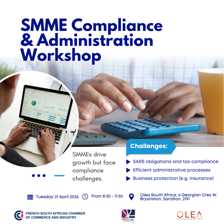 Olea South Africa • SandtonJoin FSACCI’s SMME workshop on compliance, tax & insurance. Gain practical insights to manage risk and strengthen your business operations.