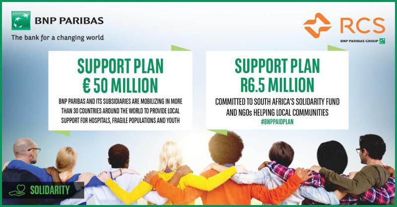 As part of the EUR 50 million emergency support loan launched by BNP Paribas, South Africa’s national efforts to combat the CoVid19 pandemic will receive a financial boost of R 6.5 million. The emergency plan was created in response to the global health crisis and aims to support hospitals and institutions that help the most vulnerable and disadvantaged people in the countries where we have a significant presence. BNP Paribas and our wholly owned subsidiary RCS, have directed the financial contribution to South Africa’s CoVid19 Solidarity Fund, set up by President Ramaphosa to help local communities deal with the impact of the virus, and a number of local NGOs including Haven Night Shelter and Afrika Tikkun in support of the amazing work they are doing to care for the most affected by the pandemic.