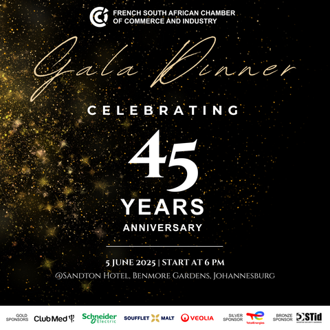 The French South African Chamber of Commerce & Industry (FSACCI) is proud to invite you to celebrate 45 years of building a sustainable trade relationship between France and South Africa during its Annual Gala Dinner in Johannesburg on June 5, 2025.