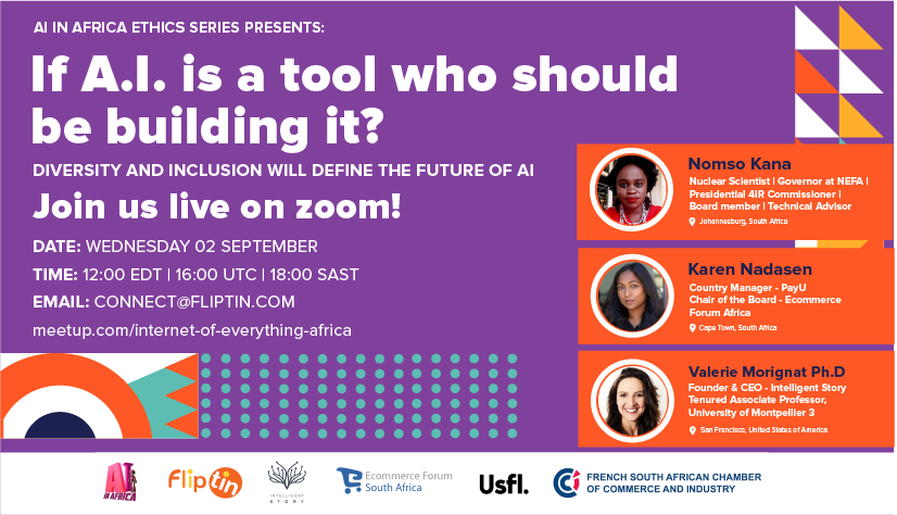 Join us for another event series with Platinum Member Fliptin Technologies. This first episode in the AI in Africa Ethics series will explore issues of Diversity and Inclusion, Bias in Algorithms and Data Privacy with three experts and attendees across the globe!