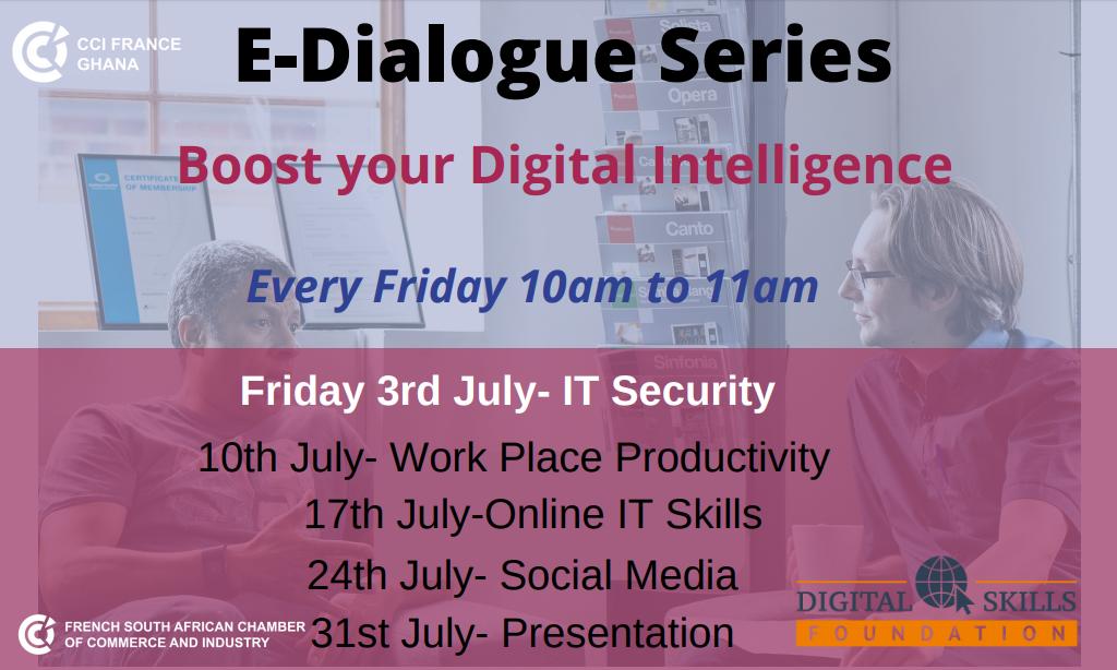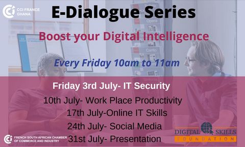 French South African Chamber of Commerce and Industry and CCI France Ghana in collaboration with the Digital Skills Foundation are organizing a 5-Week E-Dialogue Series dealing with one topic every week over an hour.