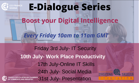 French South African Chamber of Commerce and Industry and CCI France Ghana in collaboration with the Digital Skills Foundation are organizing a 5-Week E-Dialogue Series dealing with one topic every week over an hour.