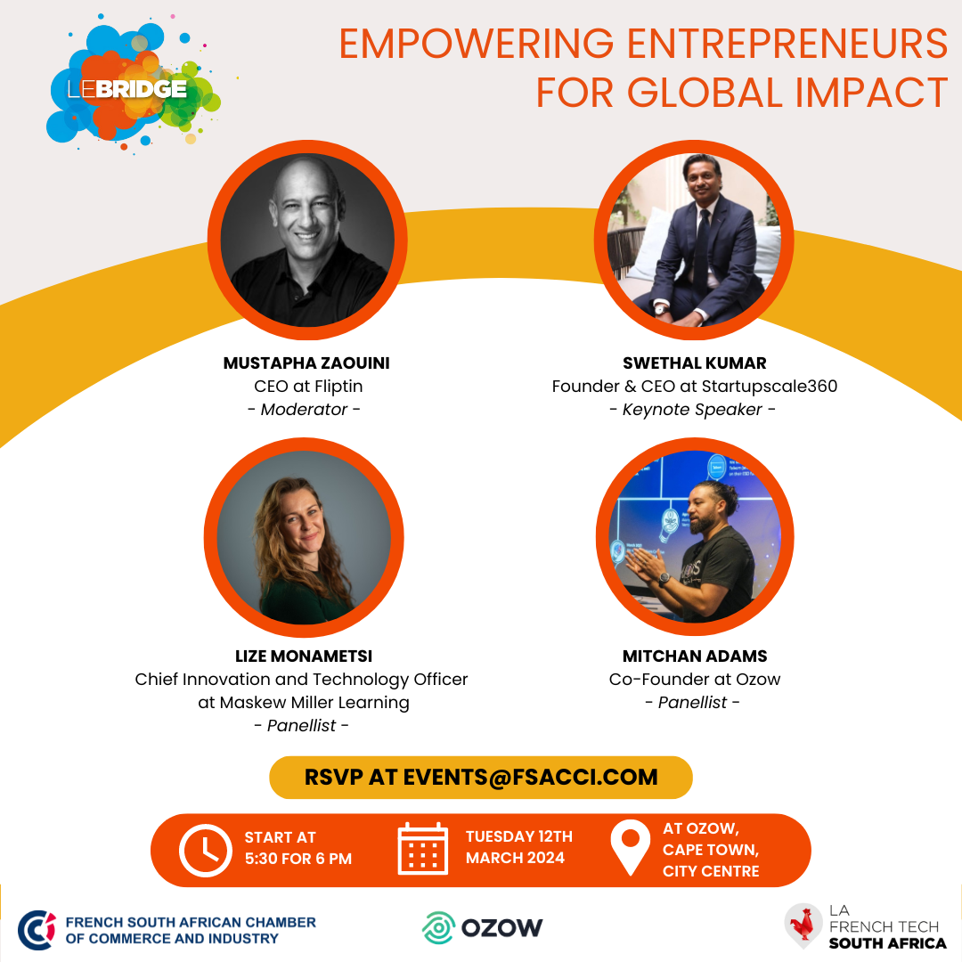 For its third edition, Le Bridge will take place exceptionally in Cape Town in anticipation of the GEC+ Africa 2024 and the Entrepreneurship World Cup 2024 held at the Cape Town International Convention Centre (CTICC) on 13-14 March 2024.