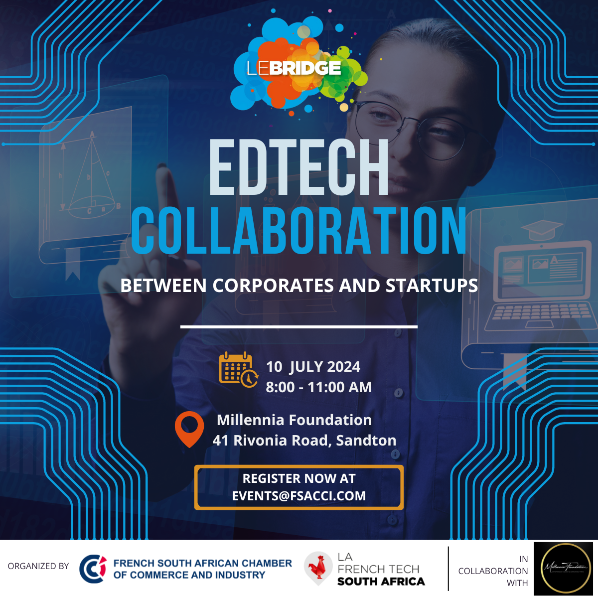 The upcoming edition of Le Bridge will focus on the collaboration between start-ups and corporates in South Africa in the field of Edtech. We will explore how start-ups can partner with corporates to deliver training and development technology services, as well as how corporate can innovate new solutions in this domain.