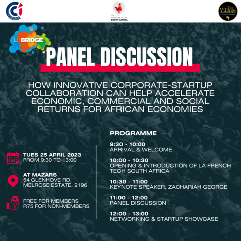 The French South African Chamber of Commerce & Industry along with the French Tech South Africa, are co-hosting a panel discussion at Mazars South Africa on April 25th to discuss “How innovative corporate-startup collaboration can help accelerate economic, commercial, and social returns for African economies.”