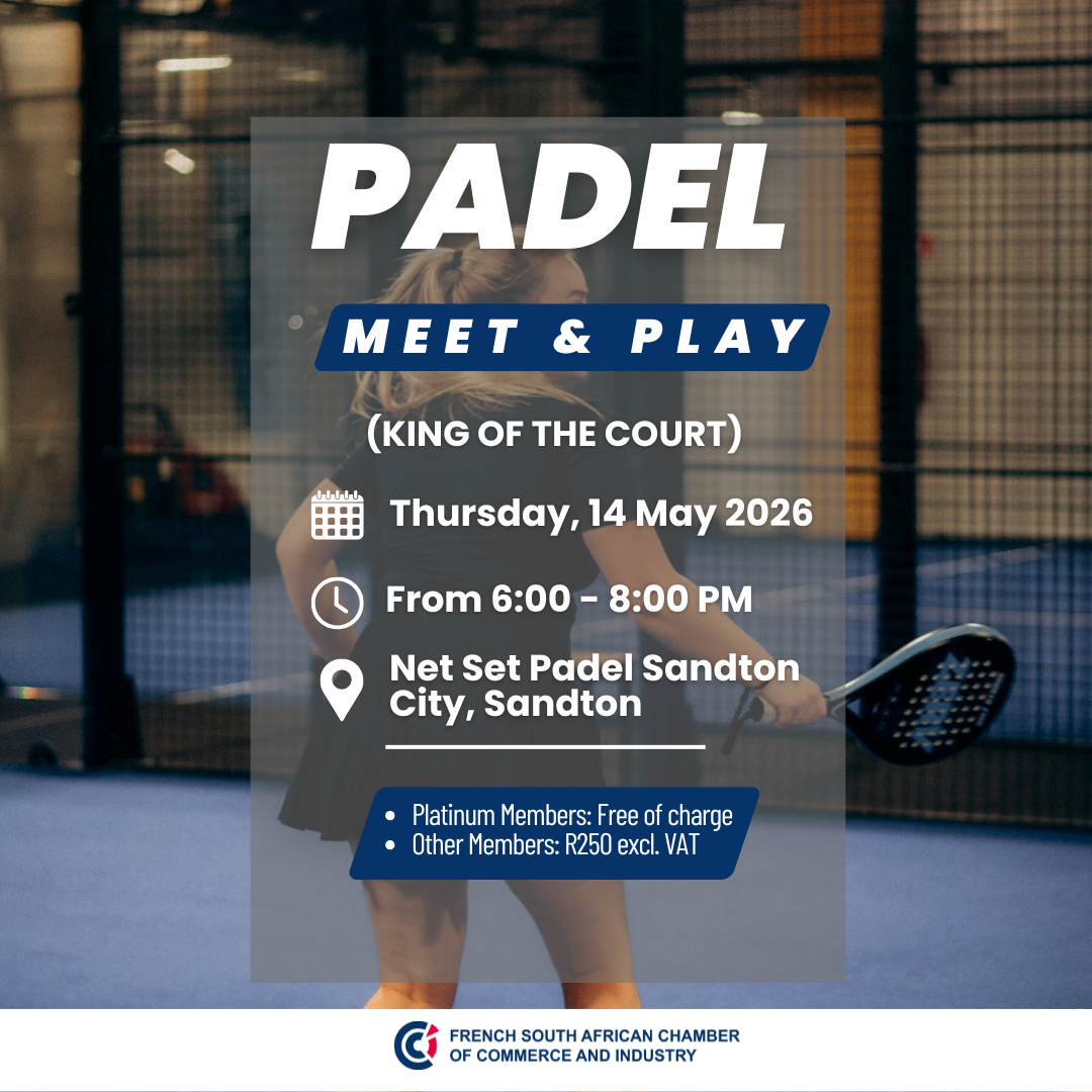 Join the French South African Chamber of Commerce & Industry for a Padel Networking Session on 14 May 2026 in Johannesburg.
