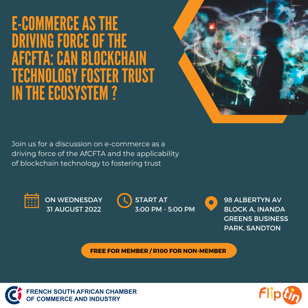 Join us on Wednesday, 31st August for a stimulating discussion on "E-commerce as the driving force of the AfCFTA: can Blockchain foster trust in the ecosystem?"
