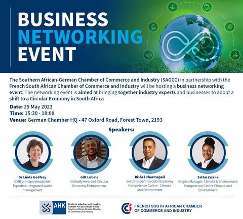 The networking event is aimed at bringing together industry experts and businesses to adopt a shift to a Circular Economy in South Africa by unlocking opportunities in the context of circular economy transition that will positively impact a low-carbon and sustainable path whilst achieving resilient economic growth.
