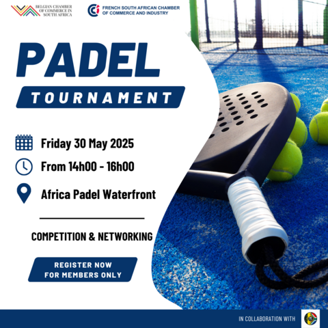 The French South African Chamber of Commerce and Industry (FSACCI) is thrilled to announce the launch of its second Padel Tournament in Cape Town in collaboration with the Belgian Chamber of Commerce in South Africa (BCCSA) to bring together respective members for an afternoon of competition and networking.