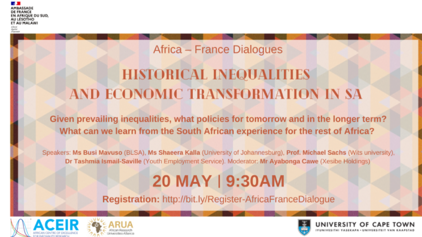 This event, hosted by the French Embassy in South Africa in partnership with the African Centre of Excellence for Inequality Research (ACEIR), University of Cape Town, will provide stakeholders with an opportunity to share their perspectives on South Africa’s inequalities and to motivate priority action-areas and policies for overcoming these inequalities.