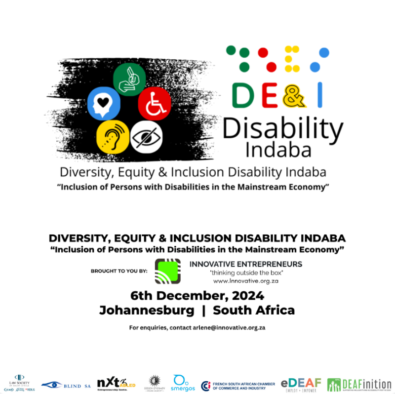 As part of their strategy to implement change, Innovative Entrepreneurs NPC is proudly hosting the DE&I Disability Indaba in collaboration with the French South African Chamber of Commerce & Industry, to promote the inclusion of Persons with Disabilities in South Africa’s Mainstream Economy.