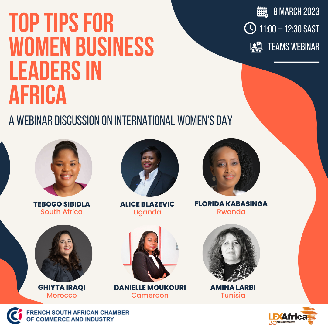To celebrate International Women’s Day, the French South African Chamber of Commerce and Industry (FSACCI) along with LEX Africa will host a webinar with 6 leading females lawyers representing the African continent.