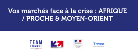Notre membre et partenaire Business France organise un webinar ce vendredi 3 avril à 10h30, avec pour sujet "Vos marchés face à la crise : AFRIQUE / PROCHE & MOYEN-ORIENT".