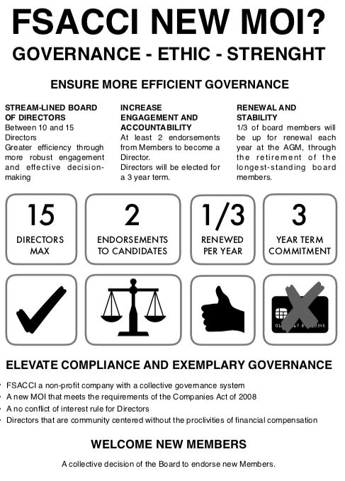 - It elevates compliance and exemplary governance, as it meets the requirements of the Compagnies Act of 2008, it instaures a no conflict of interest rule for Directors, and reminds that Directors are community centered and do not receive any financial compensation.