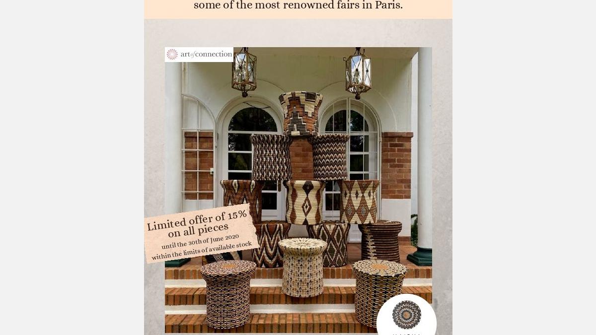 Art of Connection believes in the importance of connections and the power it has to build bridges between different cultures. 'We serve to connect local to global in the fields of craft art and art between Africa and Europe. We promote contemporary and original creations of ART and CRAFT ART from Africa to art galleries, decorators, museum shops and private collectors'.