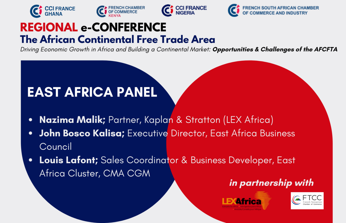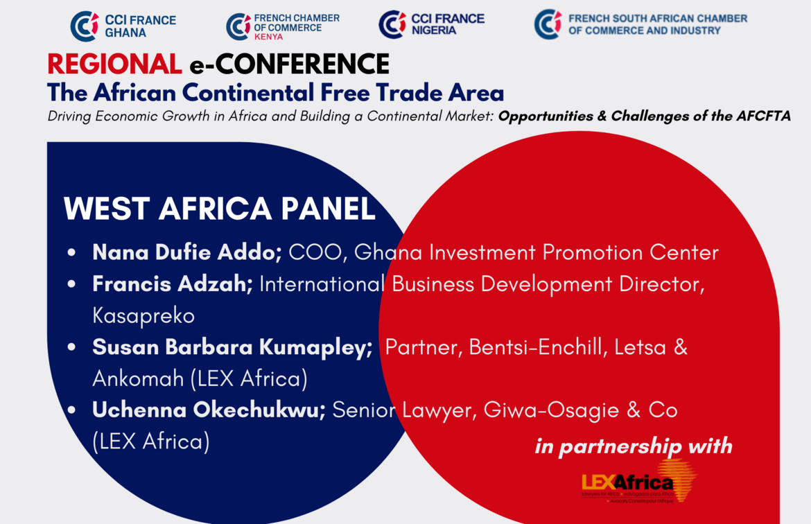 On Wednesday 15th September 2021, our French Chambers in Ghana, Kenya, Nigeria and South Africa hosted an AfCFTA Regional e-Conference to discuss the creation of the vast AfCFTA regional market and its opportunities to boost inter-African trade, attract foreign direct investment, and accelerate growth.