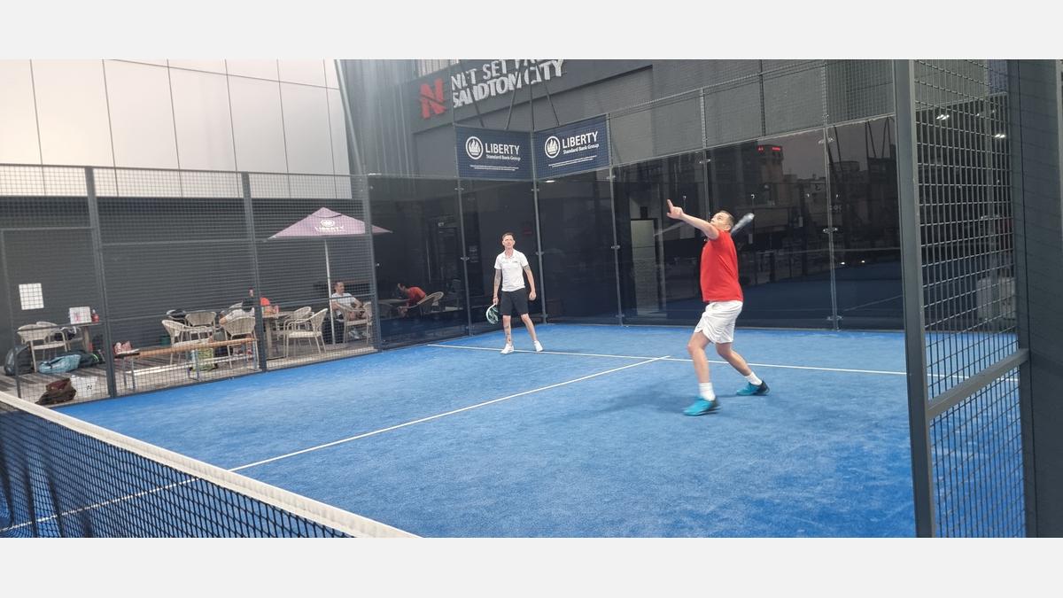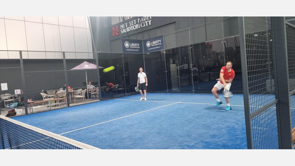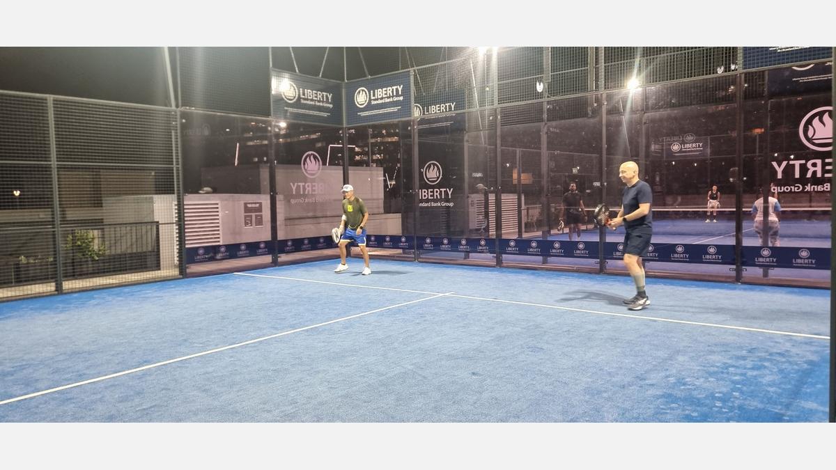 The action took place at Net Set Padel Sandton City, where business leaders traded boardrooms for backhands.