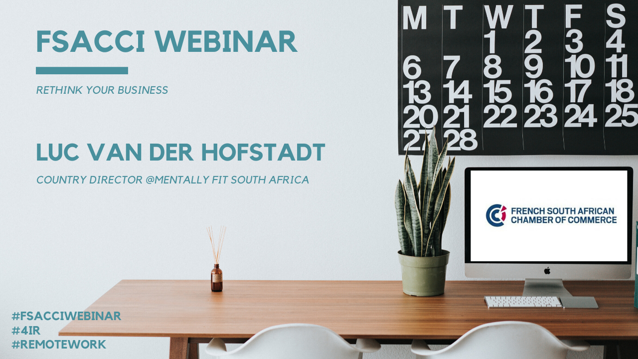 On Thursday 19th of March 2020, FSACCI held its first ever webinar on leadership for remote work. Luc Van Der Hofstadt, Country Director at Mentally Fit South Africa shared with us his expertise on how to implement leadership during a storm time and a remote environment.