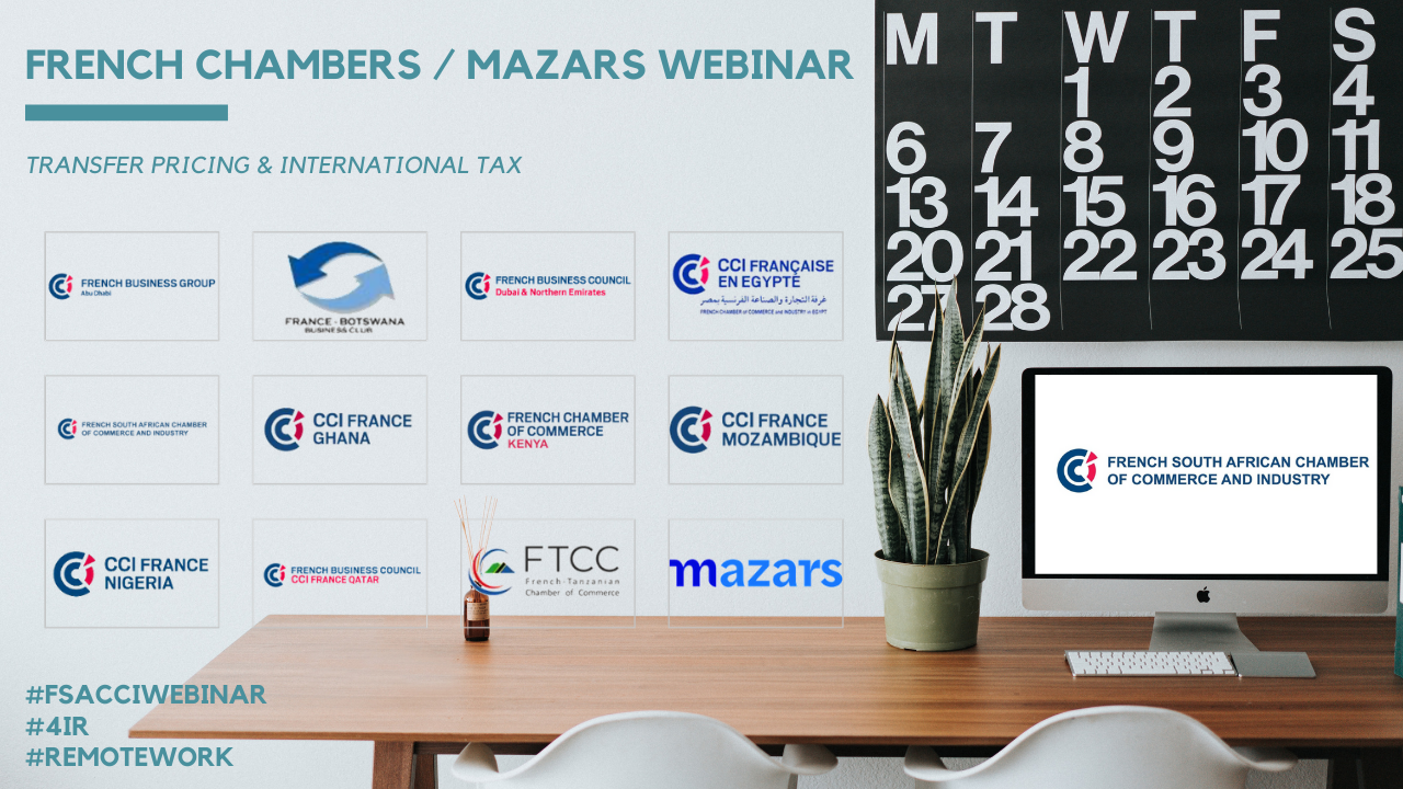 The French Chambers of Commerce & Industry in Africa and the Middle East have teamed up with Mazars for an exceptional regional webinar on Transfer Pricing and International Tax on Thursday 5th of November 2020 at 10:30am (SA Time/ GTM+2).