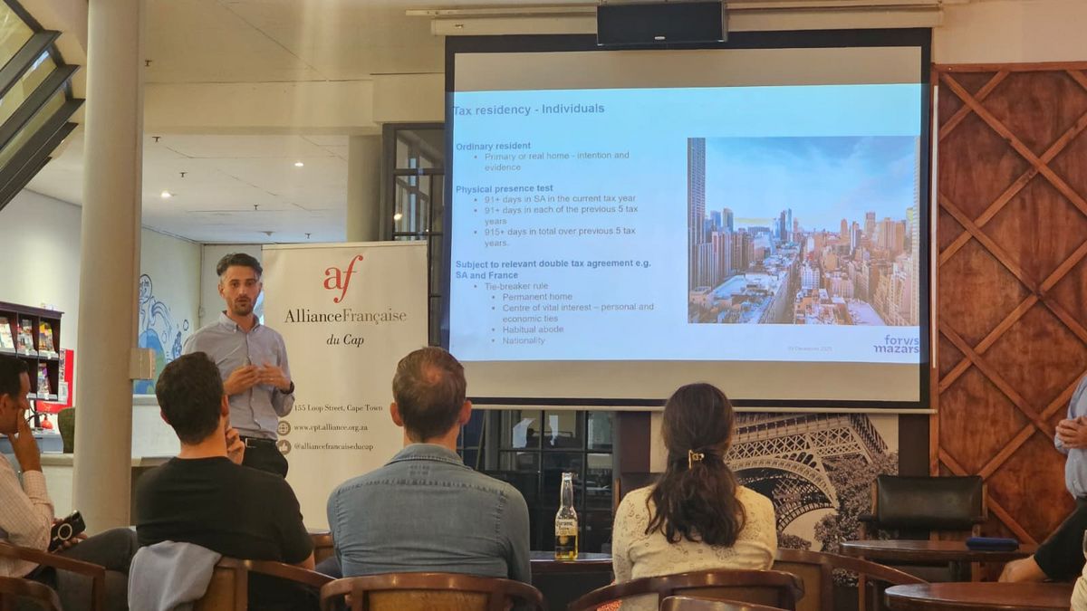 The conferences offered French expatriates and entrepreneurs' practical guidance on managing their personal and professional affairs in South Africa. Experts from ForvisMazars unpacked the essentials of the South African tax system, explaining the differences between residents and non-residents, the influence of marital regimes and corporate structures, and important considerations around succession planning, wills, and exchange control. The sessions were highly interactive, with valuable exchanges between speakers and participants.