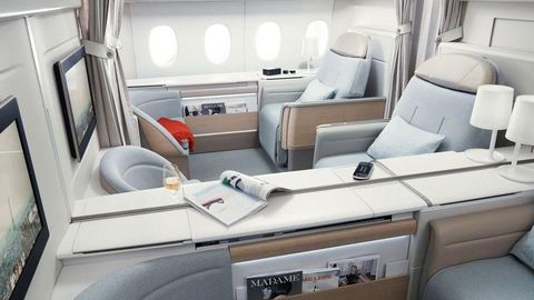 The new La Premiere suite will feature a separate sofa and chair, with each suite stretching five windows along the cabin wall. This will make it the longest first-classes suite on the market today. The space is intended to be modular, with the seat converting into a 2m long bed, with 77 cm of width.