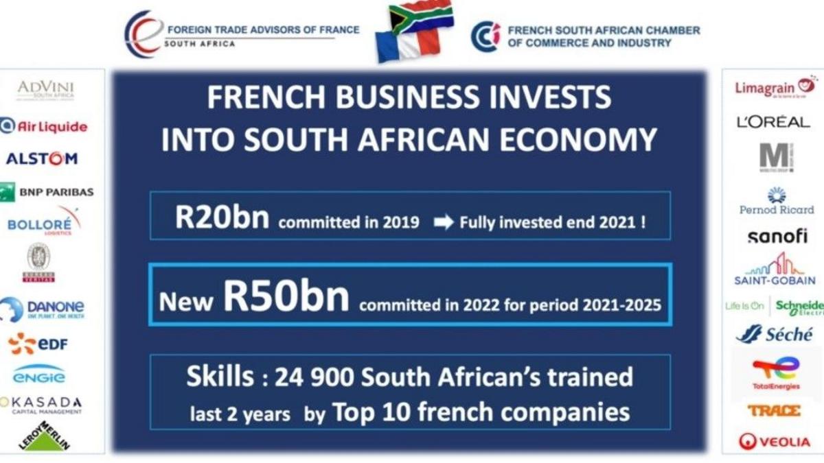 During the event, French companies have announced R50-billion of new investments in South Africa in different sectors, including energy, health, tourism, mobility, retail, manufacturing and agro-industry.