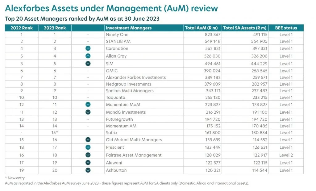 - Ninety-One Leads: Ninety-One maintains its position as South Africa's largest asset manager, with R823 billion in assets, followed closely by Stanlib and Coronation.