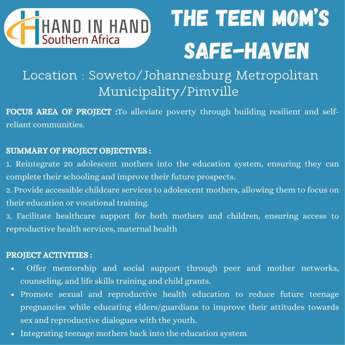 ? HAND IN HAND ? The Teen Mom's Safe-Haven – Reintegration of teenage mothers