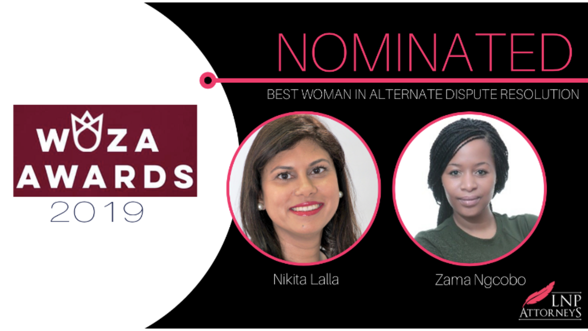 Our member LNP Attorneys is very proud to announce that its directors Nikita Lalla and Zama Ngcobo have been nominated by the Women in Law Awards (WOZA) in the category "Best Woman in Alternate Dispute Resolution".