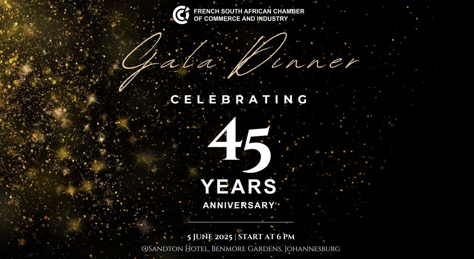 The French South African Chamber of Commerce and Industry (FSACCI) invites members and partners to take part in its Annual Gala Dinner on Thursday, 5 June 2025, at @Sandton Hotel, Benmore Gardens, Johannesburg.