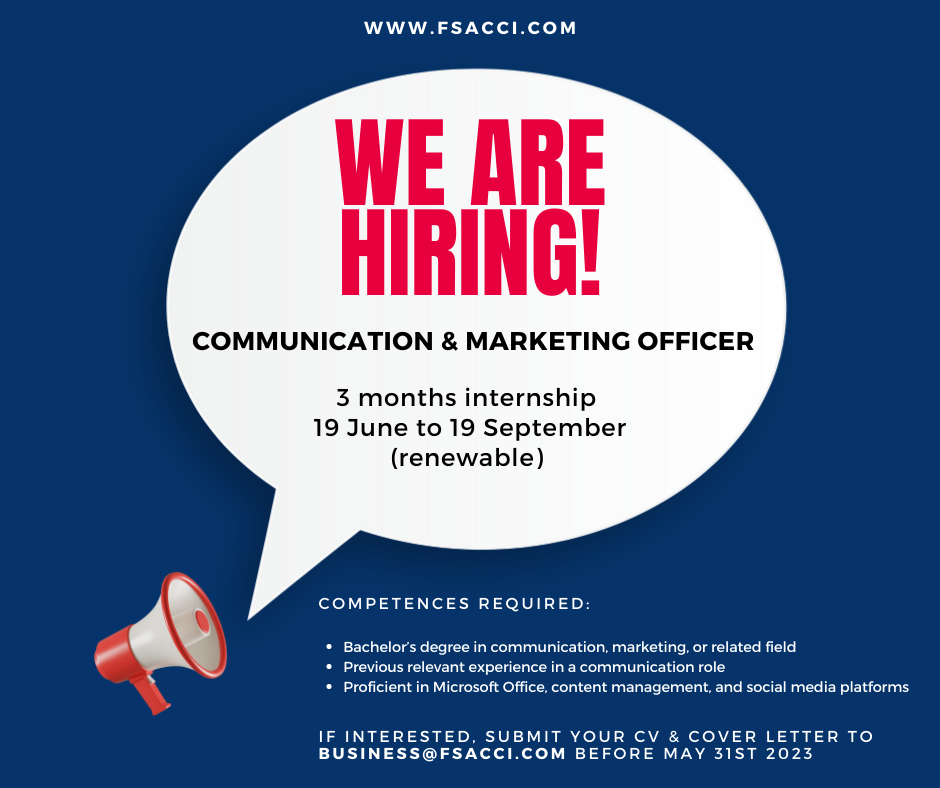 - Apply by sending your CV and cover letter to business@fsacci.com before the 27th of May 2023 with the reference “2023InternCommunication” followed by your surname and name.