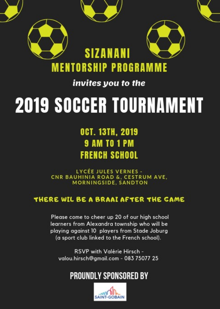 Register by 10th of October to avoid missing out! Great day of soccer, a braai and a chance to get involved in the Sizanani mentorship programme.