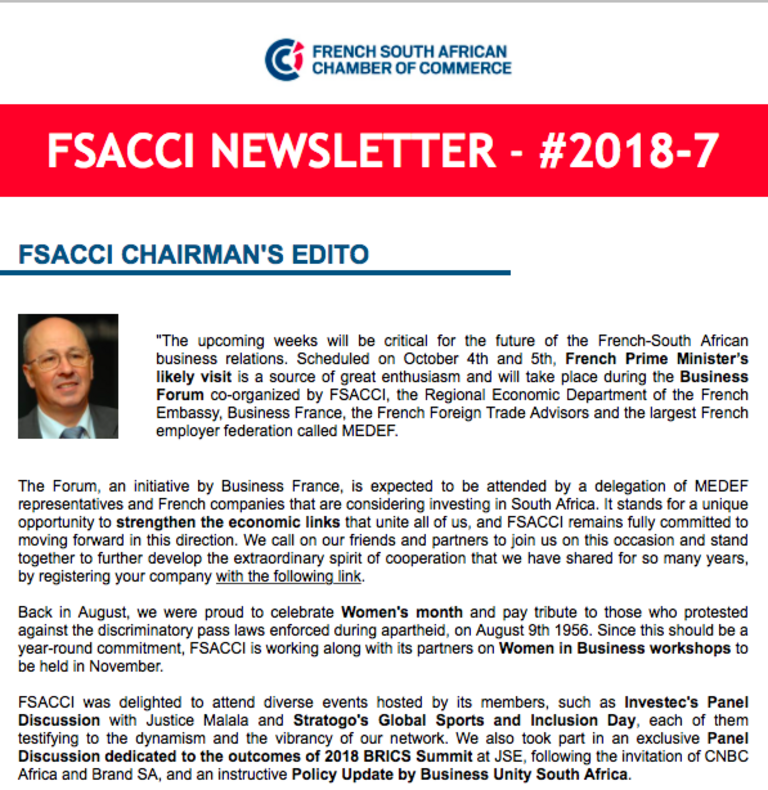 The French-South African Chamber of Commerce and Industry offers you various platforms and solutions to communicate with its members and the French-South African business community!