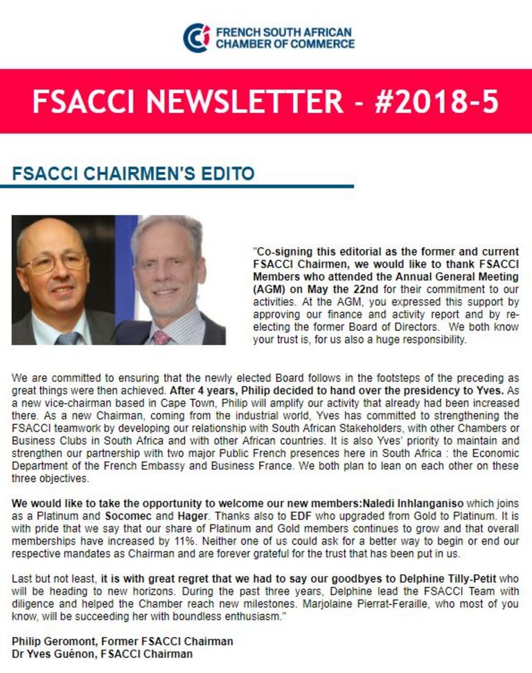 The French-South African Chamber of Commerce and Industry offers you various platforms and solutions to communicate with its members and the French-South African business community!