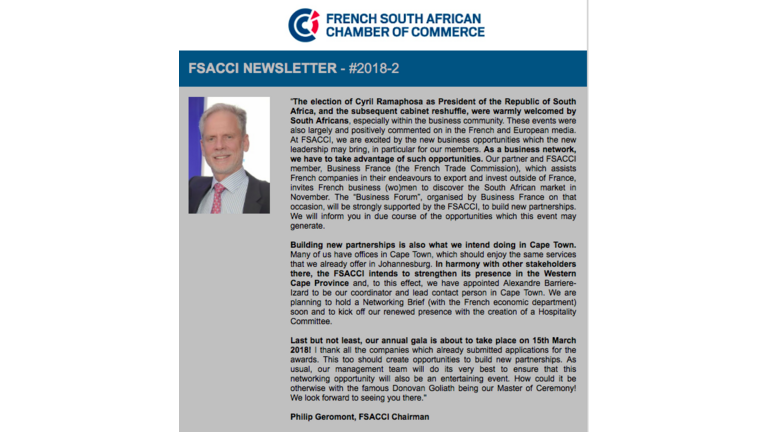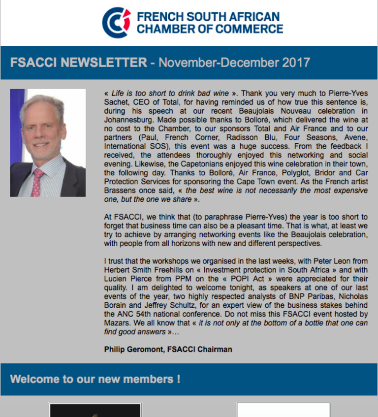 The French-South African Chamber of Commerce and Industry offers you various platforms and solutions to communicate with its members and the French-South African business community!