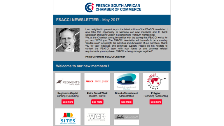 The French-South African Chamber of Commerce and Industry offers you various platforms and solutions to communicate with its members and the French-South African business community!