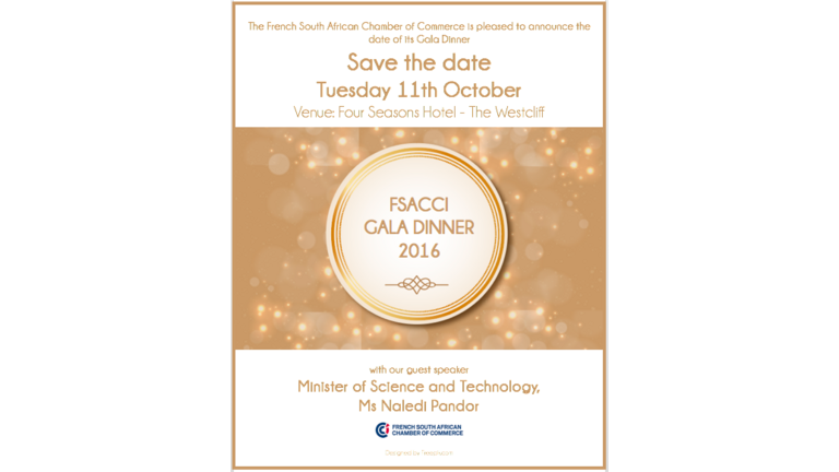 The French South African Chamber of Commerce is pleased to announce the date of its Gala Dinner