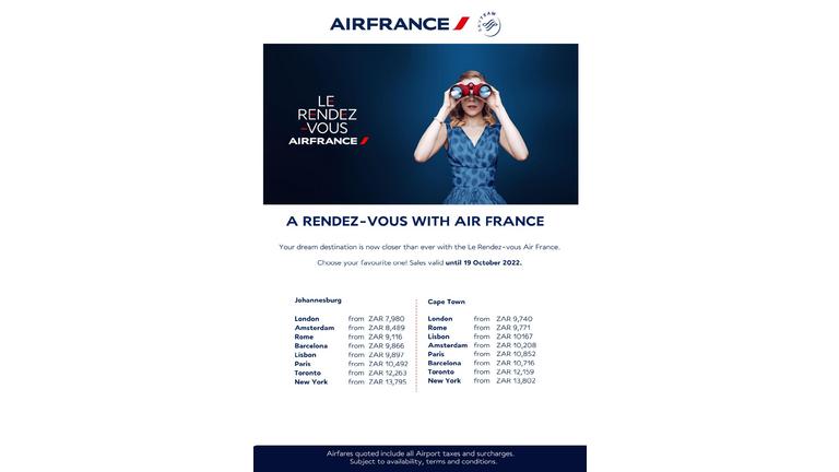 Check Air France' special offer! Your dream is now closer than ever with Le Rendez-vous Air France. Choose your favourite one! Sales valid until…